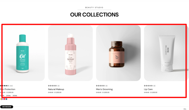 Enable Drag Button (Slider): Toggles the display of the “Discover more” button used as a slider navigation to reveal additional products.