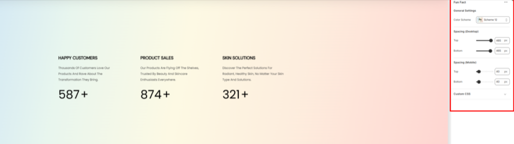 - Color Scheme: Select a color palette to be applied to the Fun Fact section.