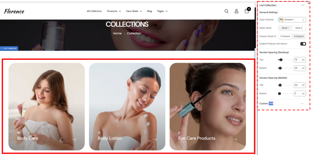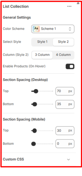• Style- Select any of the 2 already given styles for your collection page.