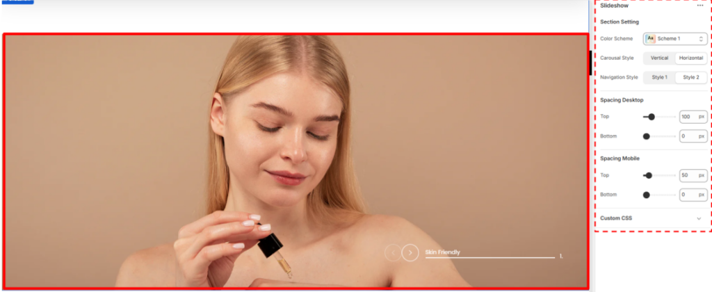 - Carousel Style: Within this field, you can choose your desired orientation of the slideshow carousel (e.g., Horizontal or Vertical) to control the direction of slide transitions.